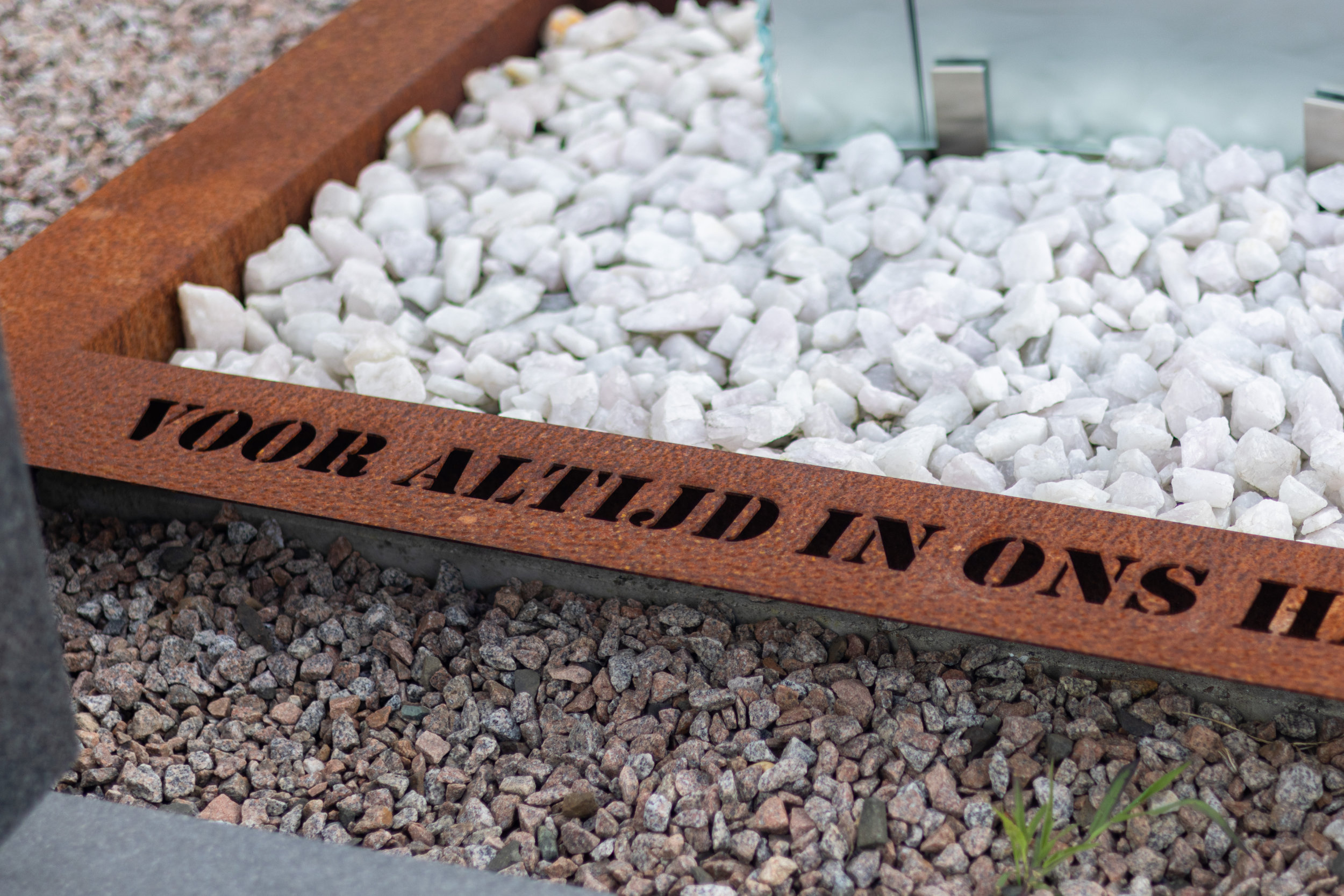 De gegraveerde letters kunnen vervolgens worden ingelakt in een kleur naar keuze denk aan: zwart, wit, zilver of goud. Deze techniek wordt vaak gekozen voor grafstenen met een luxere uitstraling, of wanneer men op zoek is naar een extra duurzame oplossing. Gravures kunnen ook gecombineerd worden met symbolen, ornamenten of sierlijnen voor een verfijnd geheel.