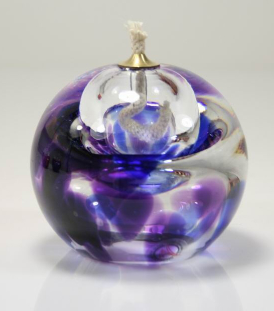 Urn van glas met olielampje ( paars blauw ).