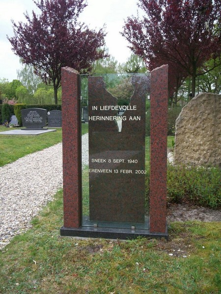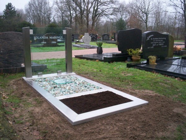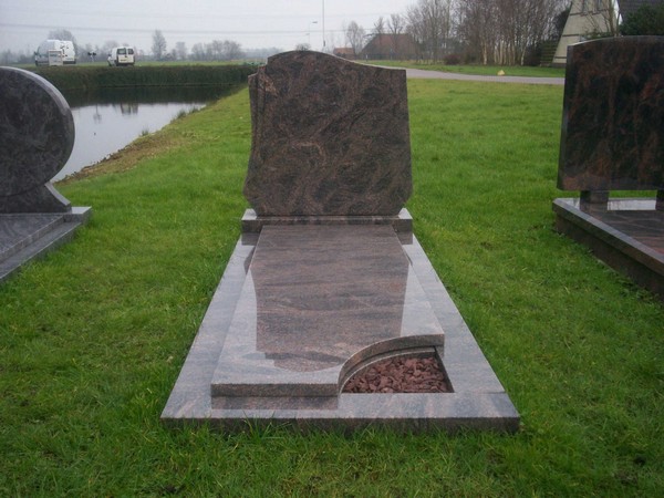 E32N Grafmonument met glasplaat en imperial red graniet .