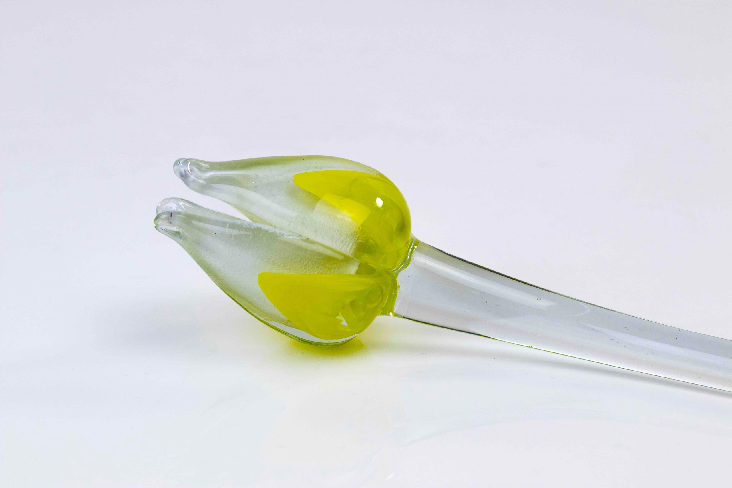 Urn in de vorm van een tulp. Hier in kan een gedeelte van de as in worden verwerkt. Erg decoratief. Lengte van de tulp is 50 cm, en is met de hand geblazen dus uniek.