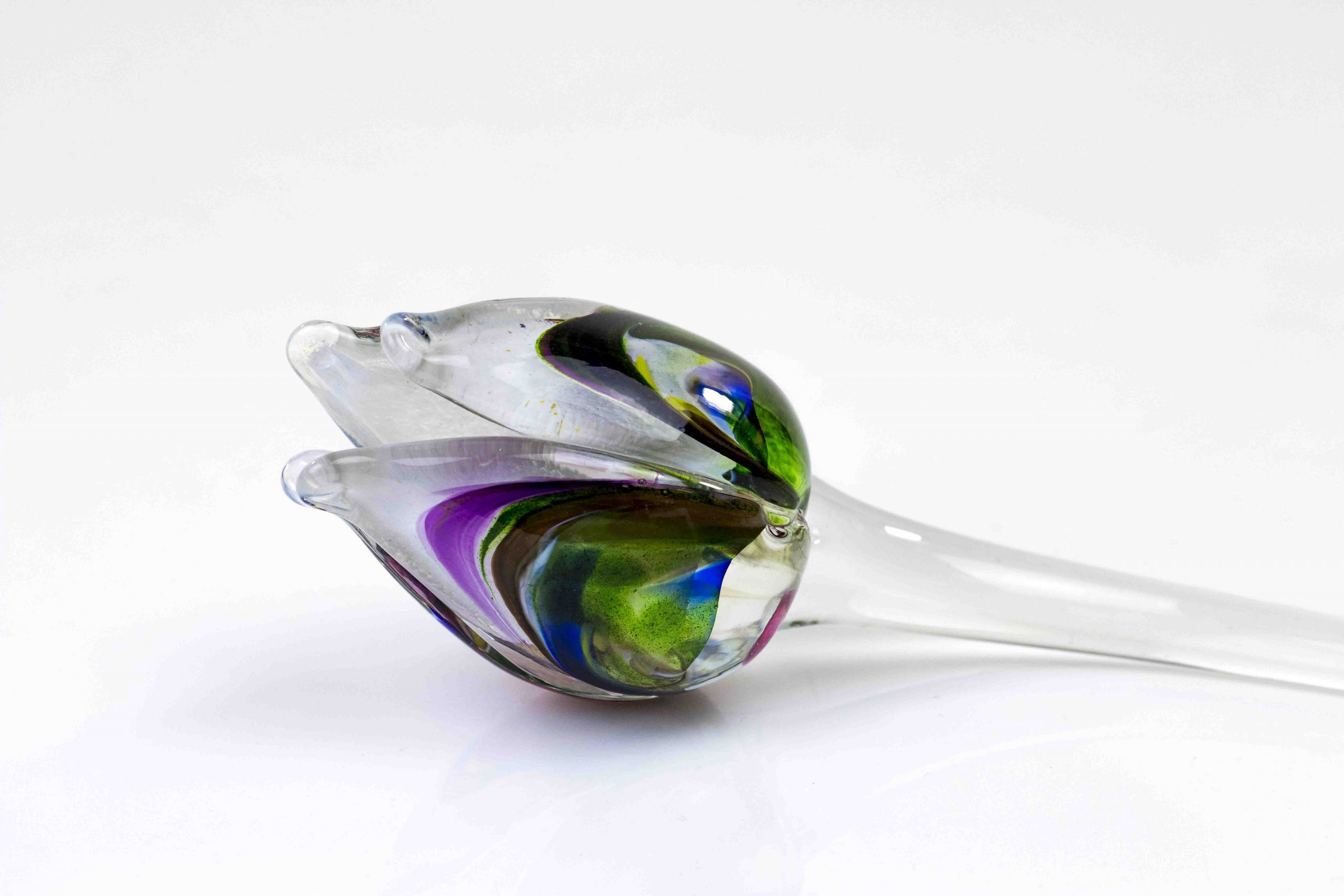 Urn in de vorm van een tulp. Hier in kan een gedeelte van de as in worden verwerkt. Erg decoratief. Lengte van de tulp is 50 cm, en is met de hand geblazen dus uniek.