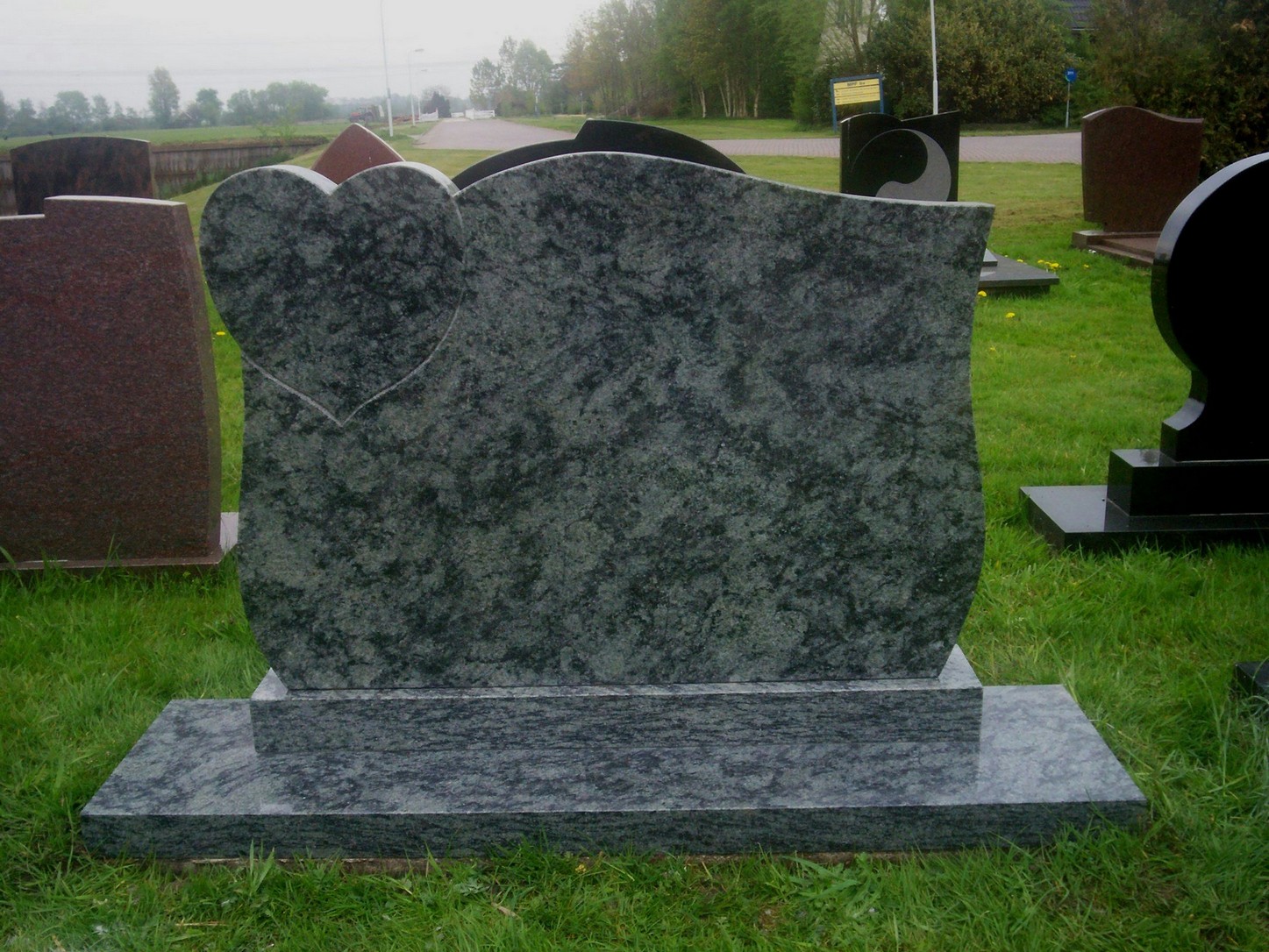 Gedenkteken van Olive-green graniet graniet met een hartje.
