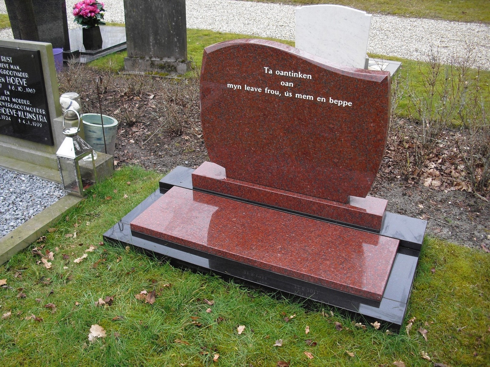 Grafsteen Heerenveen. Een gedenksteen van Imperial red graniet met een zwart graniet omranding. Een mooi gedenkteken van imperial red en zwart graniet.