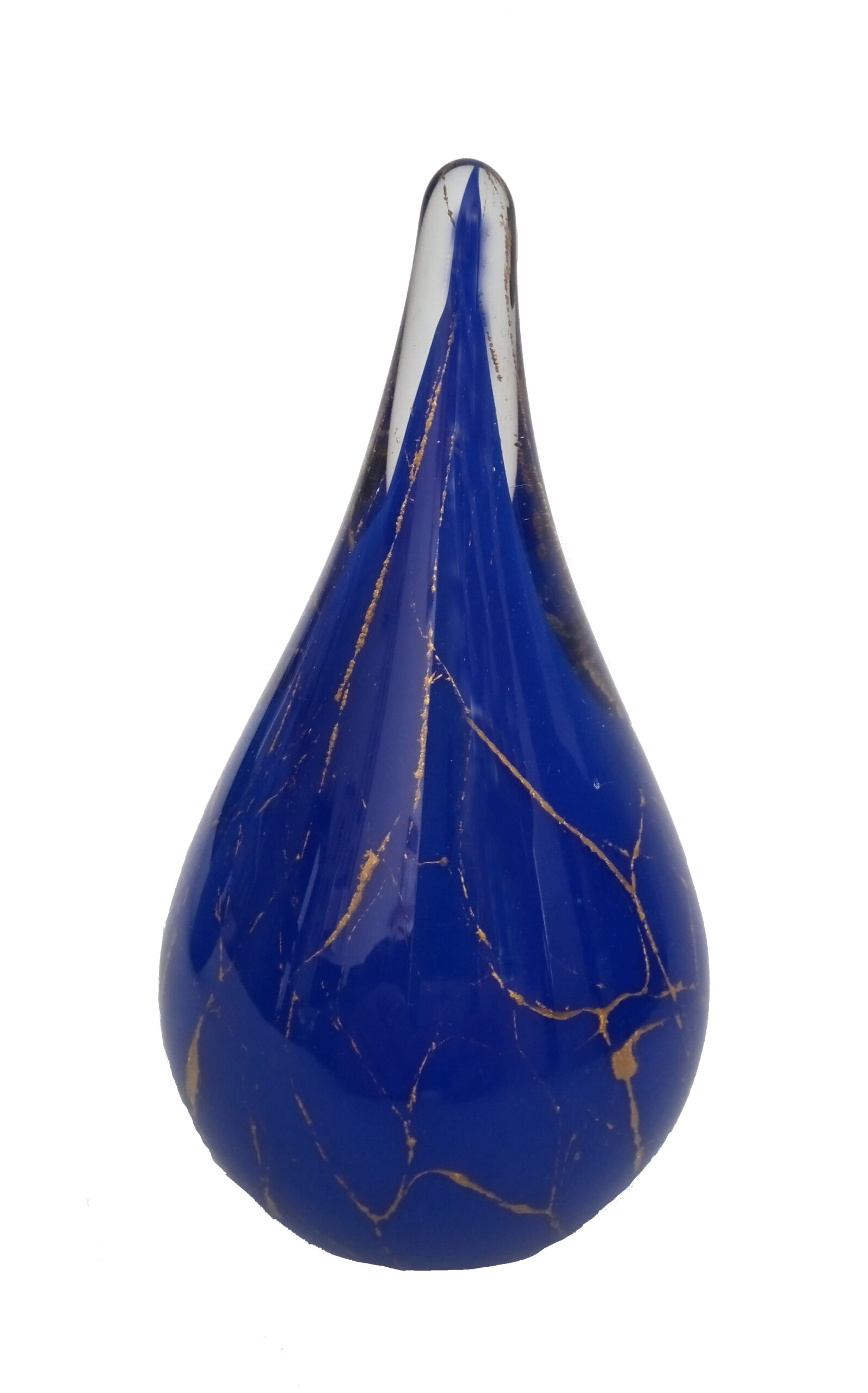 Deze urn is van glas, met de hand geblazen , dus uniek.
