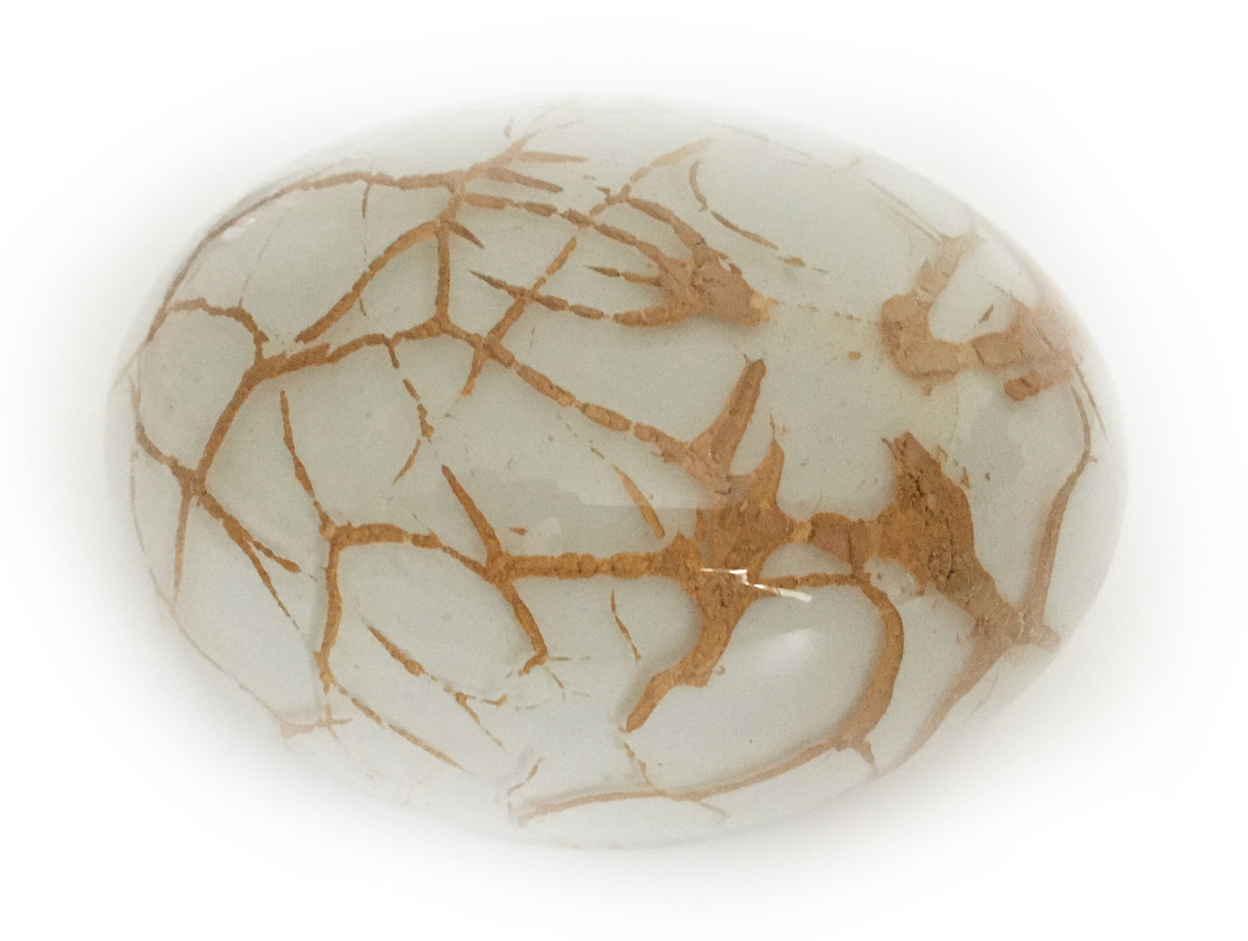 Urn van glas in de vorm van een keitje ( wit-goud).