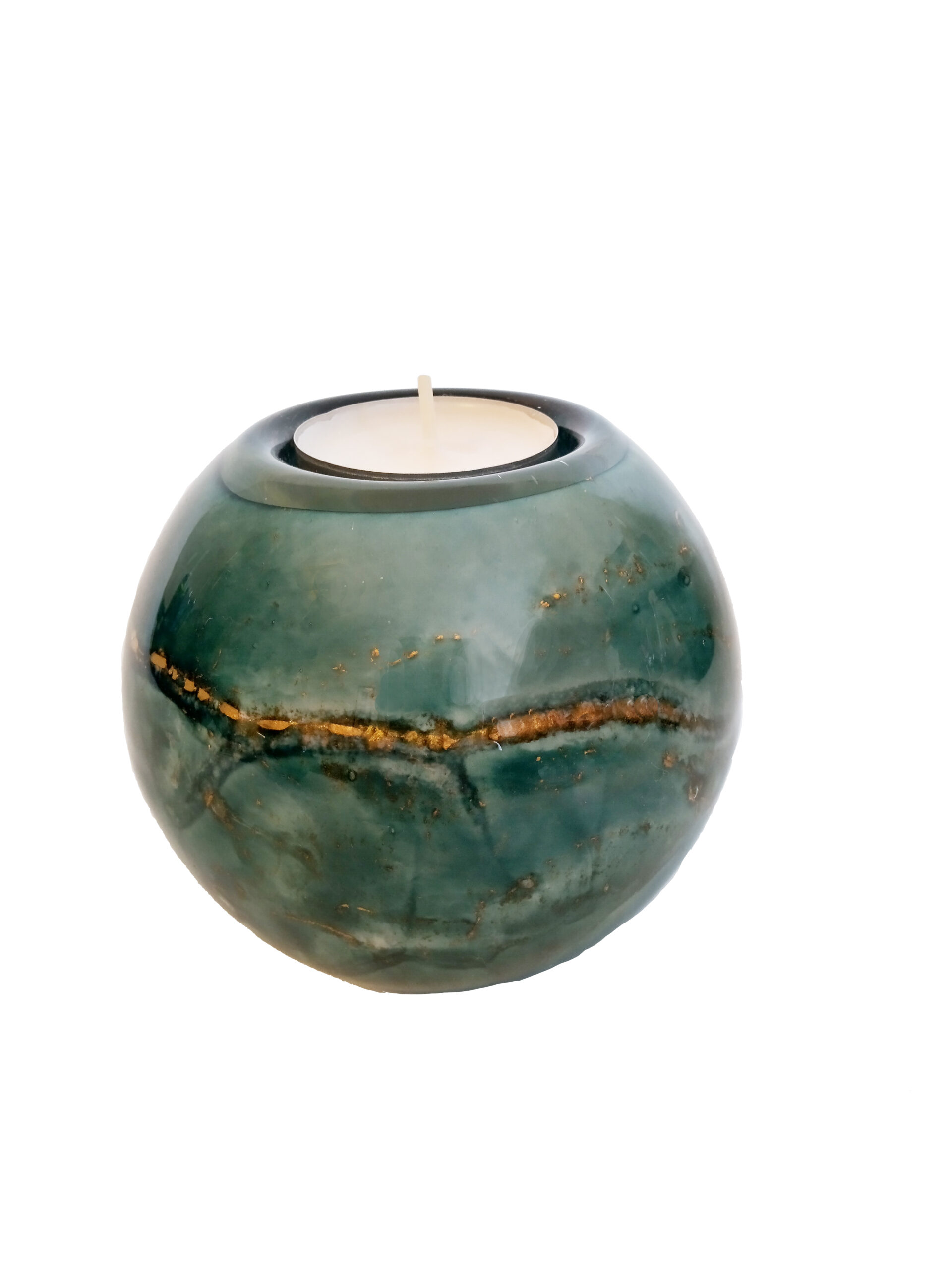 Deze urn is van glas, met de hand geblazen , dus uniek.